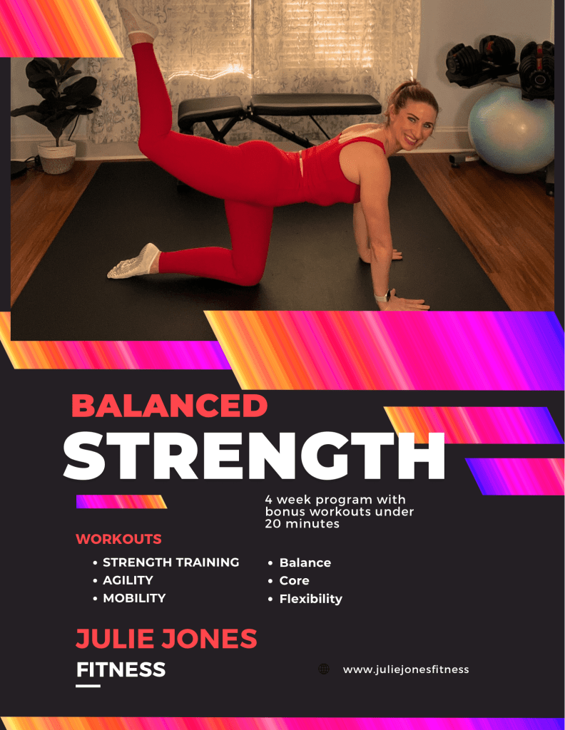 Are you ready to gain strength, improve agility, mobility, balance and core strength? Then you NEED to join me for Balanced Strength! My new 4 week program with a bonus 5th week of express (under 20 minute) workouts is for you.