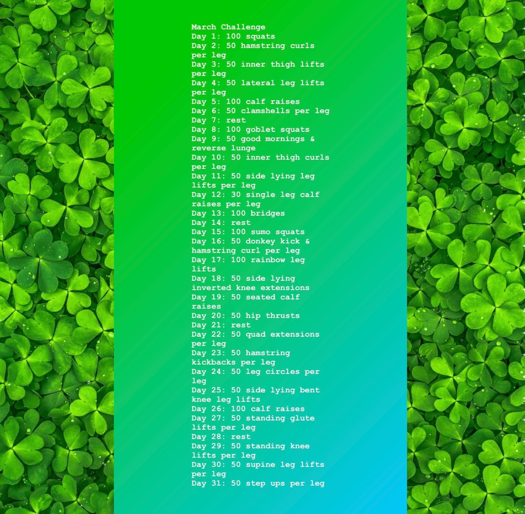 If you want to add on the Lower Body Challenge I am running on Instagram, here is the calendar for that: